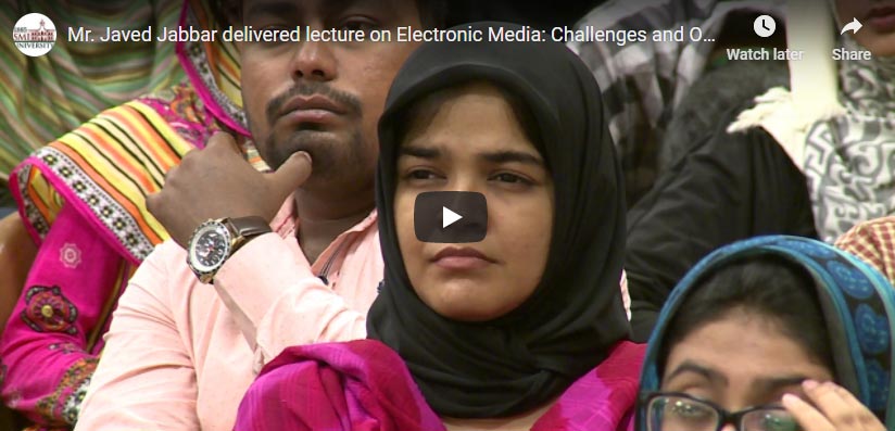 Mr. Javed Jabbar delivered lecture on Electronic Media: Challenges and Opportunities at SMIU